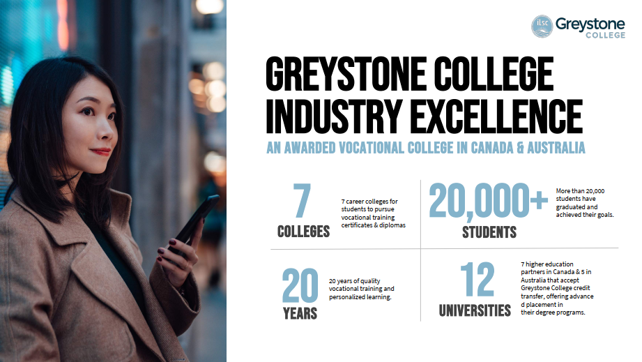Trường Cao đẳng nghề Greystone cung cấp các khóa học nghề, mang đến cho sinh viên cơ hội nghề nghiệp trong lĩnh vực Kinh doanh, Nhà hàng khách sạn, Truyền thông marketing và Công nghệ thông tin.