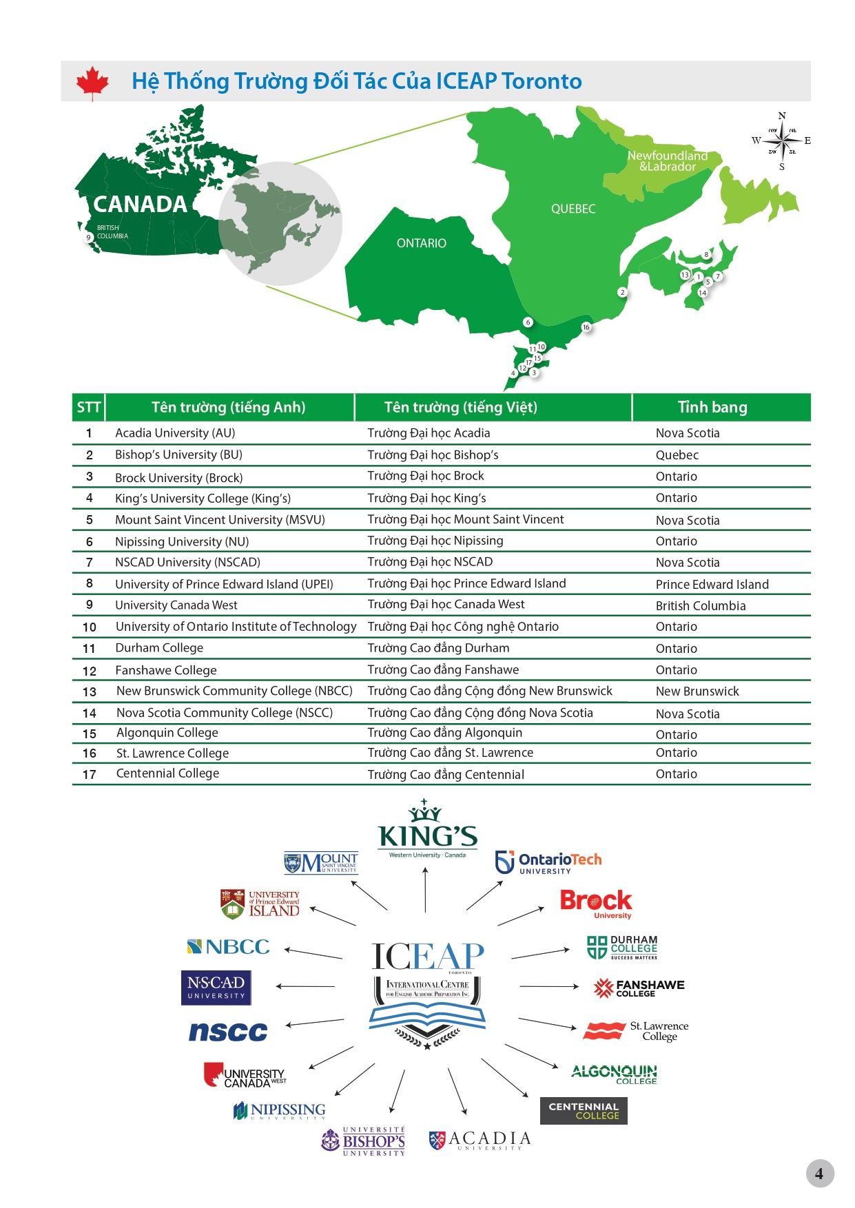 Trường Anh ngữ ICEAP Toronto liên kết với 17 trường Đại học, Cao đẳng nổi tiếng ở hầu như tất cả các Bang của Canada. Khi theo học chương trình tiếng anh tại đây học sinh được chuyển tiếp lên các khóa học bậc Cao đẳng, Đại học tại những ngôi trường này vô cùng dễ dàng.